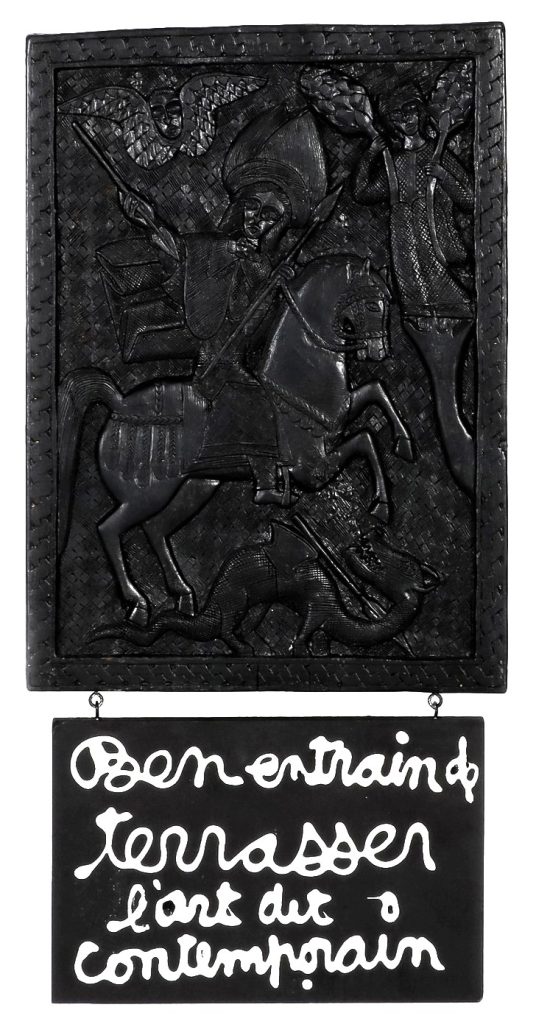 Ben est particulièrement connu pour ses œuvres écrites qui questionnent constamment le monde et l’art. En 1958, il crée sa première « signature », lançant un débat sur l’égo et l’appropriation en art. Il signe le monde autour de lui, transformant des éléments de la vie quotidienne en œuvres d’art, et en 1959, il crée les premières « sculptures vivantes » en signant les gens de son entourage. De 1960 à 1963, Ben approfondit cette réflexion sur l’appropriation et rejoint le groupe Fluxus, un collectif artistique qui remet en question le statut de l’artiste et de l’œuvre d’art dans la société avec humour et jeu. Ses célèbres slogans manuscrits en lettres blanches sur fond noir deviennent des punchlines retentissantes, abordant des sujets d’actualité et se diffusant largement à travers des produits dérivés tels que trousses, sacs et agendas. Ben réussit ainsi à inscrire son art à la fois dans une dimension conceptuelle et accessible à tous, incarnant l’idée que tout est art.